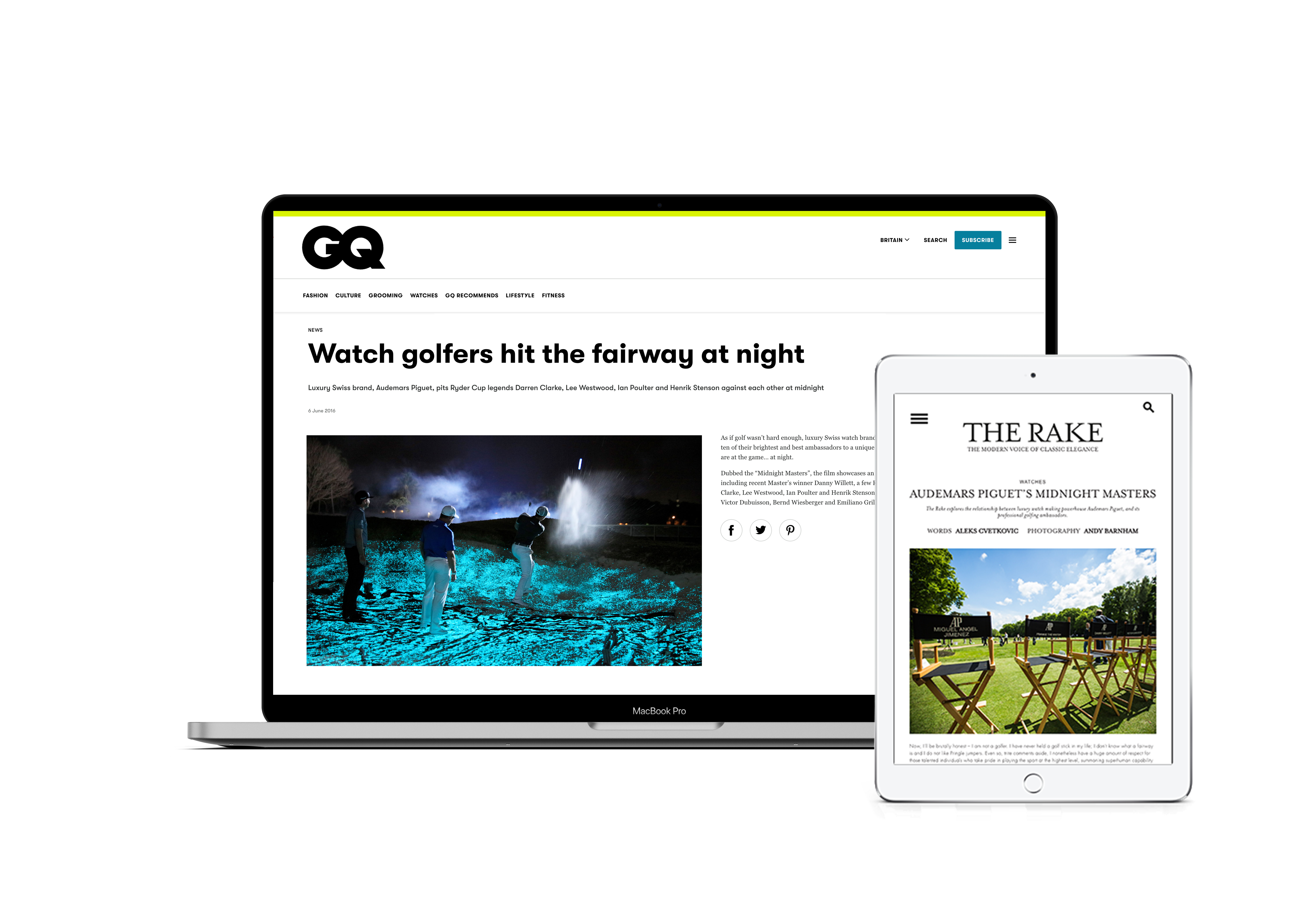 Midnight Masters, a breathtaking social & PR format, brought Audemars Piguet’s sponsorship of golf to new audiences. Filmed at night featuring light installations and innovative techniques, players such as Henrik Stenson, Lee Westwood, and Iain Poulter were put through their paces. The campaign received critical acclaim and appeared across numerous earned media titles from GQ to Hypebeast.