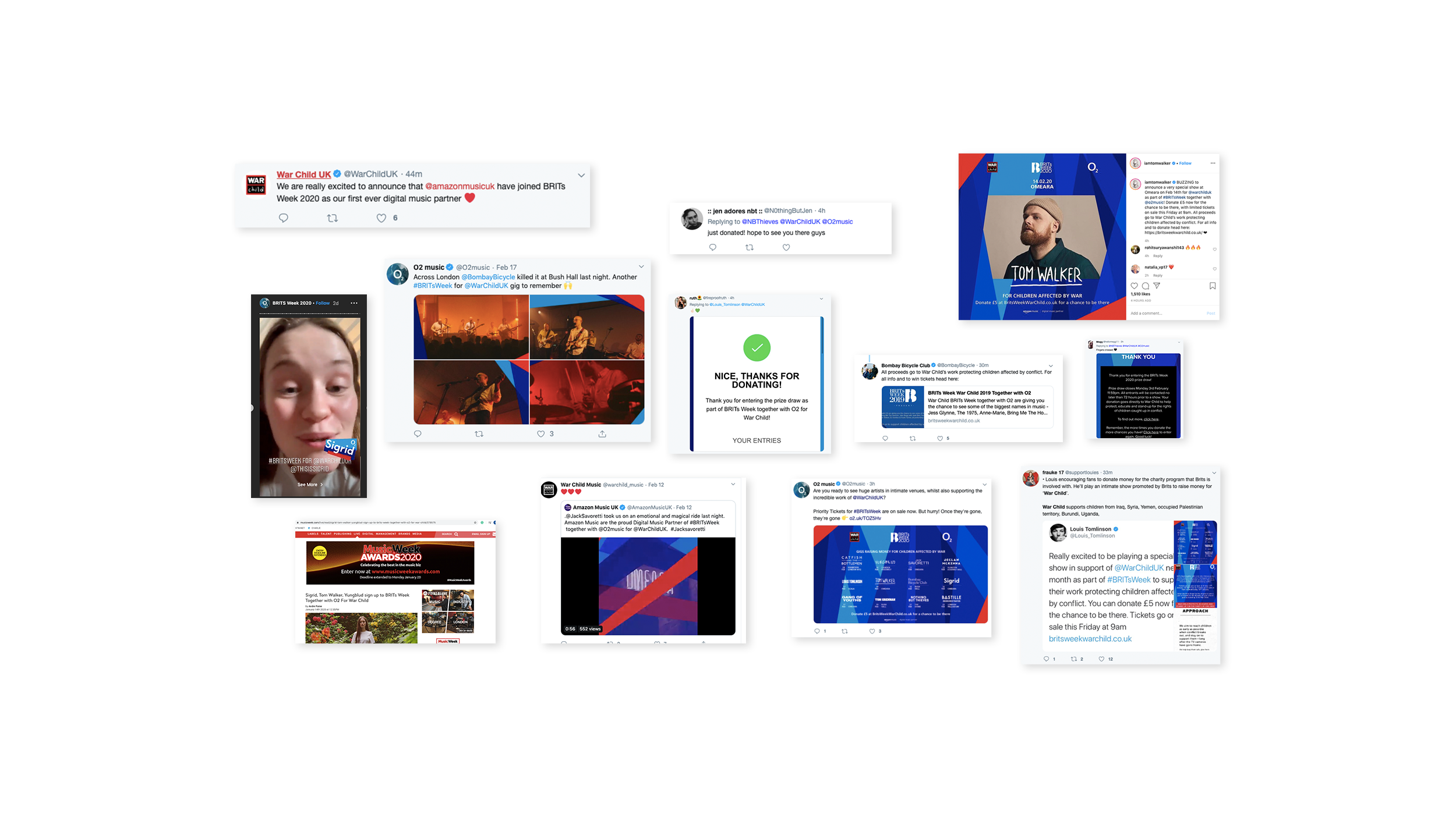We matched every artist to an individual child who received help from War Child. Each child’s story was told through a suite of assets promoting the gigs and driving donations across O2, artist and paid media channels.